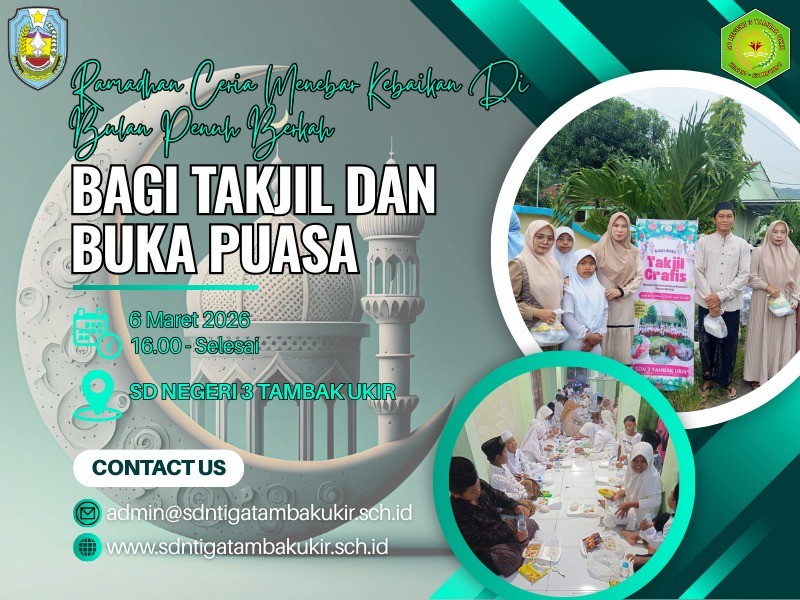 Tambak Ukir – Dalam rangka menyemarakkan bulan suci Ramadan, SD Negeri 3 Tambak Ukir menggelar kegiatan berbagi takjil dan buka puasa bersama pada hari Jumat 06 Maret 2026. Kegiatan ini diikuti oleh para guru, siswa, serta staf sekolah dengan penuh antusias.