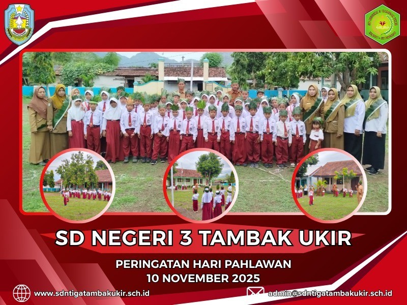 Tambak Ukir, 10 November 2025 — Dalam rangka memperingati Hari Pahlawan Nasional, SD Negeri 3 Tambak Ukir menggelar upacara dan berbagai kegiatan bernuansa perjuangan pada Senin (10/11). Kegiatan ini diikuti oleh seluruh siswa, guru, serta staf sekolah dengan penuh semangat dan khidmat.